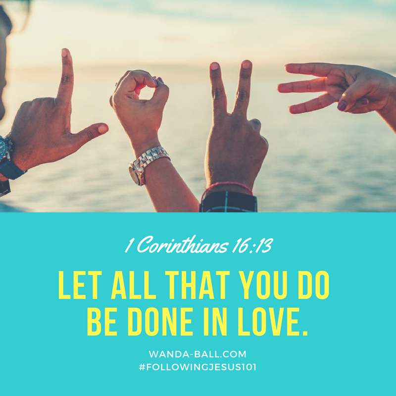Keep alert, stand firm in your faith, be courageous, be strong. Let all that you do be done in love. ~1 Corinthians 16:13