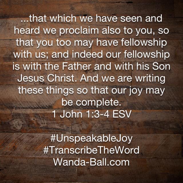 (Thurs) 1 John 1:3-4 – SOAP 1 John 1:3-4